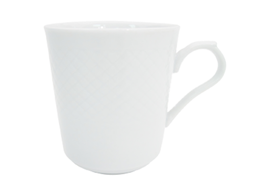 Boston Mug, 8 oz., 3" dia. x 3-1/2"H, round, tall, embossed, dishwasher, oven and microwave safe, porcelain, Super White (Sold by case)