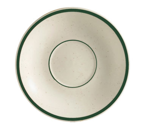 Emerald Saucer, 6" dia. x 1"H, round, dishwasher, oven and microwave safe, stoneware (ceramic), Emerald Rim/Emerald Speckled/American White (Sold by case)