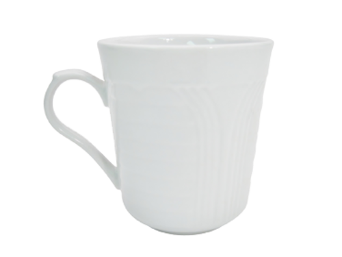 Corona Mug, 8 oz., 3" dia. x 3-1/2"H, round, tall, embossed, dishwasher, oven and microwave safe, porcelain, Super White (Sold by case)