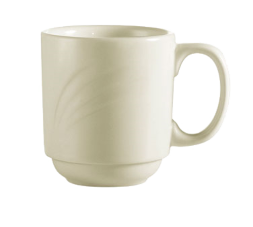 Garden State Mug, 12 oz., 3-3/8" dia. x 3-3/4"H, round, stackable, embossed, dishwasher, oven and microwave safe, porcelain, Bone White (Sold by case)
