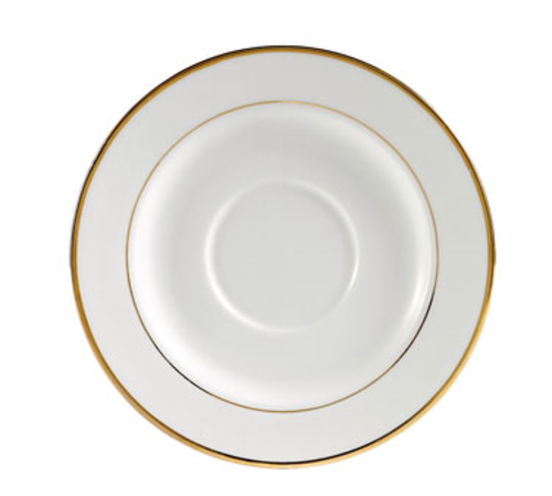 Golden Royal Saucer, 5-3/4" dia. x 3/4"H, round, dishwasher and oven safe, porcelain, Gold Band/Super White (for GRY-1 or GRY-23) (Sold by case)