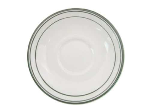 Greenbrier Saucer, 6" dia. x 1"H, round, dishwasher, oven and microwave safe, stoneware (ceramic), Green Band/American White (for GS-1, GS-23, GS-37, GS-17, GS-4 and GS-95) (Sold by case)