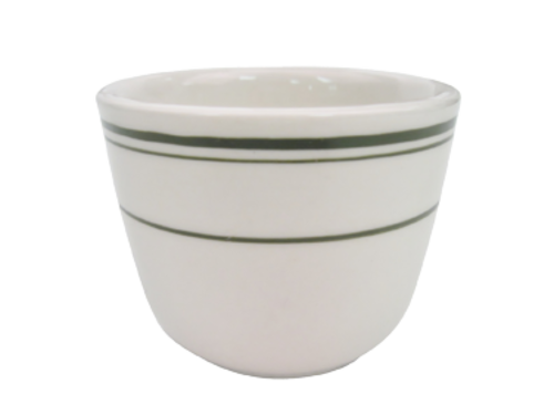 Greenbrier Tea Cup, 4-1/2 oz., 2-7/8" dia. x 2-1/4"H, round, dishwasher, oven and microwave safe, stoneware (ceramic), Green Band/American White (Sold by case)