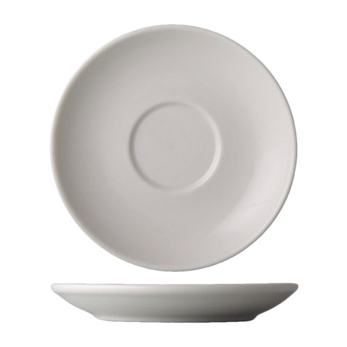 Great Wall Saucer, 4-1/2" dia. x 3/4"H, round, glazed foot, dishwasher, oven and microwave safe, porcelain, Bone White (for GW-35 and GW-CLB35) (not available until 2019, contact factory for availability) (Sold by case)