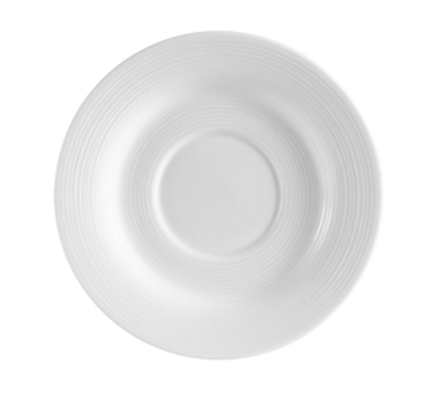 Harmony Saucer, 5" dia. x 1/2"H, round, embossed, dishwasher, oven and microwave safe, porcelain, Super White (for HMY-35) (Sold by case)