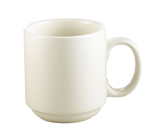 Mug Collection Prime Mug, 10 oz., 3-1/4" dia. x 3-1/2"H, round, stacking, dishwasher, oven and microwave safe, stoneware (ceramic), American White (Sold by case)