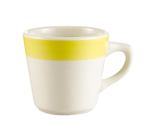 Rainbow Coffee Cup, 7-1/2 oz., 3-1/4" dia. x 3"H, round, dishwasher, oven and microwave safe, stoneware (ceramic), Yellow (Sold by case)
