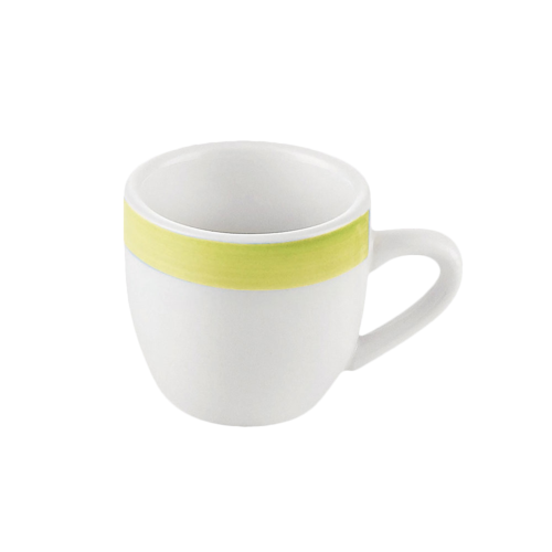 Rainbow A.D Cup, 3-1/2 oz., 2-1/2" dia. x 2-1/2"H, round, dishwasher, oven and microwave safe, stoneware (ceramic), yellow/American White (Sold by case)