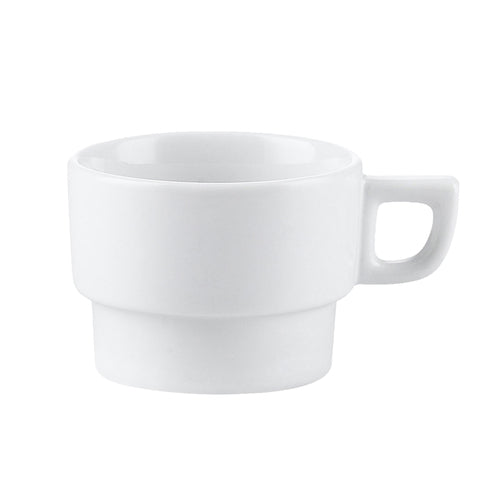 Clinton Frank Cup, 7 oz., 3-1/2" dia. x 2-1/2"H, round, with handle, stackable, dishwasher, oven and microwave safe, porcelain, Super White (Sold by case)