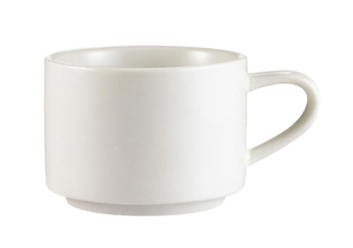 Clinton Coffee Cup, 7-1/2 oz., 3-1/4" dia. x 2-1/4"H, round, stacking, dishwasher, oven and microwave safe, porcelain, Super White (Sold by case)