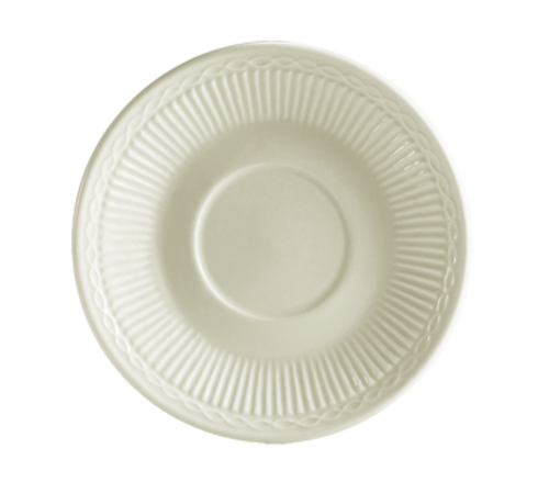 Ridgemont Saucer, 5-3/8" dia. x 7/8"H, round, embossed, dishwasher, oven and microwave safe, stoneware (ceramic), American White (for RID-1, RID-17 and RID-4) (Sold by case)