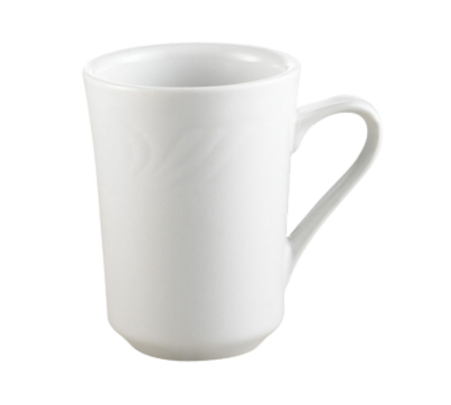 Roosevelt Mug, 8 oz., 3-1/8" dia. x 4"H, round, tall, embossed, dishwasher, oven and microwave safe, porcelain, Super White (Sold by case)