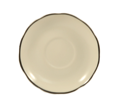Seville Saucer, 6" dia. x 3/4"H, round, scallop edge, dishwasher, oven and microwave safe, stoneware (ceramic), Black Band/American White (for SC-1B and SC-4B) (Sold by case)