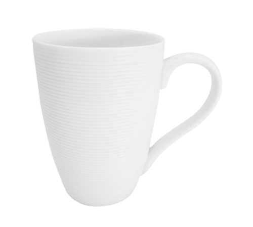 Transitions Mug, 12 oz., 3-1/2" dia. x 4-3/4"H, round, tall, embossed, dishwasher, oven and microwave safe, porcelain, Super White (Sold by case)