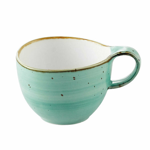 Tucson Cup, 8-1/2 oz., 3-5/8" x 3-3/4" x 2-7/8"H, round, with handle, dishwasher, oven and microwave safe, porcelain, reactive glaze, Turquoise (fits saucer TUS-2-TQS) (Sold by case)