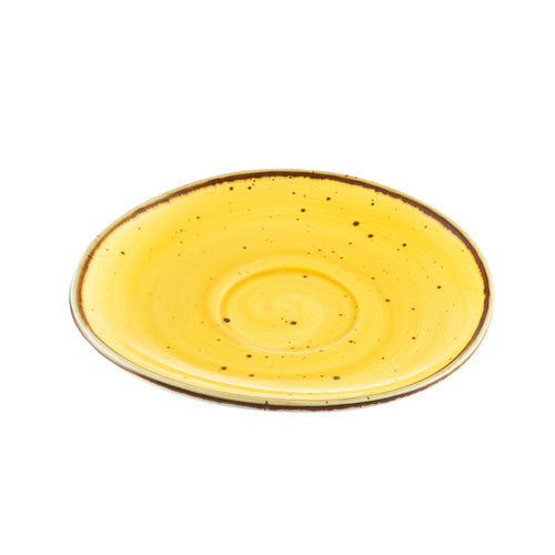 Tucson Saucer, 6-1/4" x 5-7/8", irregular round, dishwasher, oven and microwave safe, porcelain, reactive glaze, Sunflower (fits TUS-1-SFL) (Sold by case)