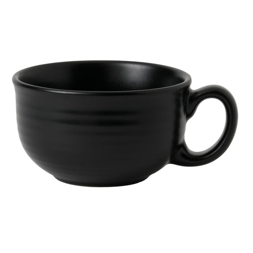 Tea Cup, 8 oz., round, with handle, rolled edge, dishwasher & microwave safe, ceramic, Dudson, Evo, Jet (stock item)