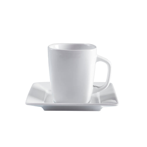 Cup, 8 oz, 4", square with rounded corners, non-stackable, scratch/chip resistant, microwave, dishwasher & oven safe up to 380°F, porcelain, Corona, Zen, bright white (Made to Order item- 6 to 8 weeks lead time, minimum order = case quantity)