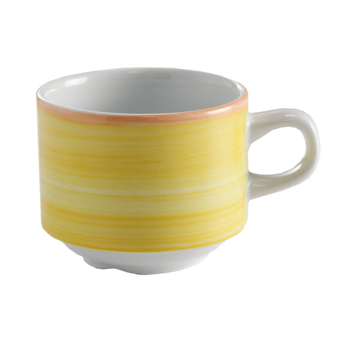 Espresso Cup, 2-9/10 oz., 3-3/4" dia., with handle, stackable, scratch/chip resistant, microwave, dishwasher & oven safe up to 380°F, porcelain, Corona, Calypso, Yellow (Made to Order item- 6 to 8 weeks lead time, minimum order = 42 dozen)