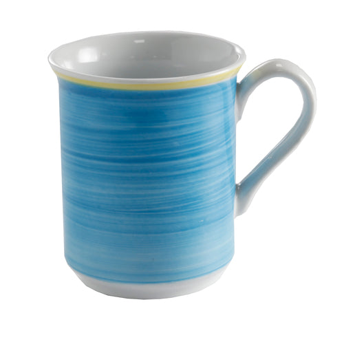 Mug, 11 oz., 5"dia., with handle, scratch/chip resistant, microwave, dishwasher & oven safe up to 380°F, porcelain, yellow edge, Corona, Calypso, Blue (Stocked Item)