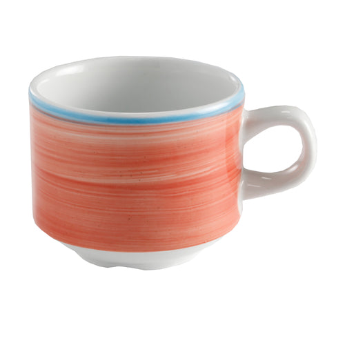 Espresso Cup, 2-9/10 oz., 3-3/4" dia., with handle, stackable, scratch/chip resistant, microwave, dishwasher & oven safe up to 380°F, porcelain, Corona, Calypso, Coral (Made to Order item- 12 weeks lead time, minimum order = 42 dozen)