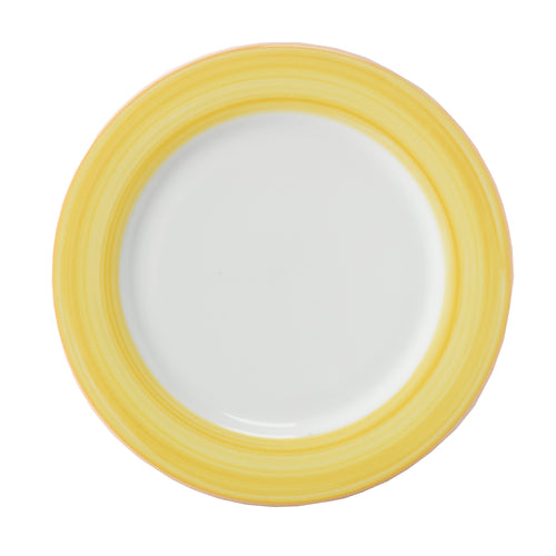 Mug, 11 oz., 5" dia., with handle, scratch/chip resistant, microwave, dishwasher & oven safe up to 380°F, porcelain, yellow edge, Corona, Calypso, Green (Stocked Item)