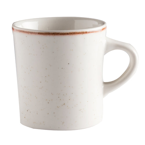 Mug, 11 oz., 5", with handle, rolled edge, scratch/chip resistant, microwave, dishwasher & oven safe up to 380°F, porcelain, Corona, Artisan, beige (Stocked Item)