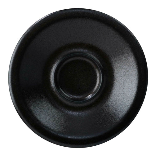 Espresso Saucer, 5" dia., round, rolled edge, scratch/chip resistant, microwave, dishwasher & oven safe up to 380°F, porcelain, Corona, Cosmos Pluto, black reactive glaze (Made to Order item- 6 to 8 weeks lead time, minimum order = case quantity)