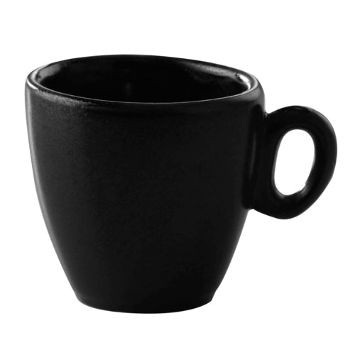 Espresso Cup, 1-7/8 oz., 3" dia., with handle, rolled edge, scratch/chip resistant, microwave, dishwasher & oven safe up to 380°F, porcelain, Corona, Cosmos Pluto, black reactive glaze (Made to Order item- 6 to 8 weeks lead time, minimum order = case quantity)