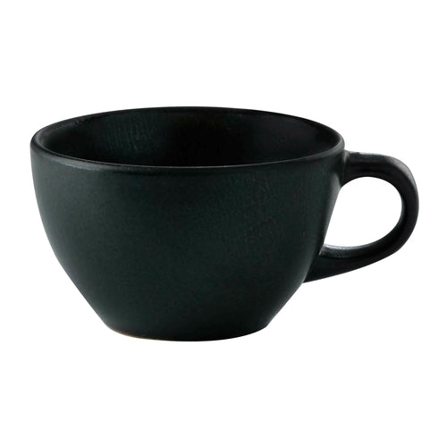 Espresso Cup, 3-11/16 oz., 4" dia., with handle, rolled edge, scratch/chip resistant, microwave, dishwasher & oven safe up to 380°F, porcelain, Corona, Cosmos Pluto, black reactive glaze (Made to Order item- 6 to 8 weeks lead time, minimum order = case quantity)