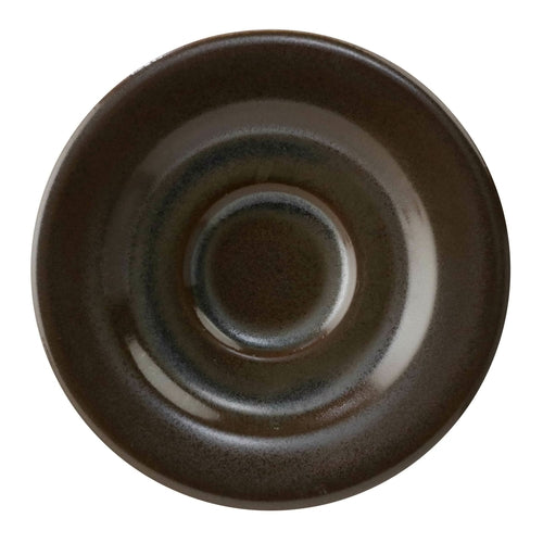 Coffee/Espresso Saucer, 5" dia., round, rolled edge, scratch/chip resistant, microwave, dishwasher & oven safe up to 380°F, porcelain, Corona, Cosmos Mercury, dark brown reactive glaze (Made to Order item- 6 to 8 weeks lead time, minimum order = case quantity)