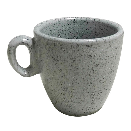 Espresso Cup, 1-7/8 oz., 3" dia., with handle, rolled edge, scratch/chip resistant, microwave, dishwasher & oven safe up to 380°F, porcelain, Corona, Cosmos Moon, speckled grey reactive glaze (Made to Order item- 6 to 8 weeks lead time, minimum order = case quantity)