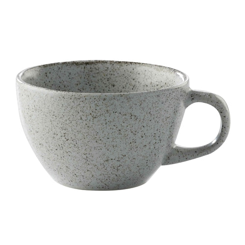 Espresso Cup, 3-11/16 oz., 4" dia., with handle, rolled edge, scratch/chip resistant, microwave, dishwasher & oven safe up to 380°F, porcelain, Corona, Cosmos Moon, speckled grey reactive glaze (Made to Order item- 6 to 8 weeks lead time, minimum order = case quantity)