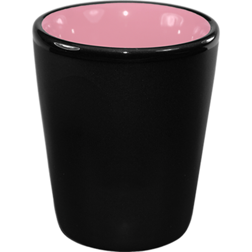 Shot Cup, 1-1/2 oz., 2" dia. x 2-1/4"H, round, without handle, fully vitrified, microwave & dishwasher safe, lead free, fully vitrified, stoneware, black matte exterior, pink interior, Hilo®