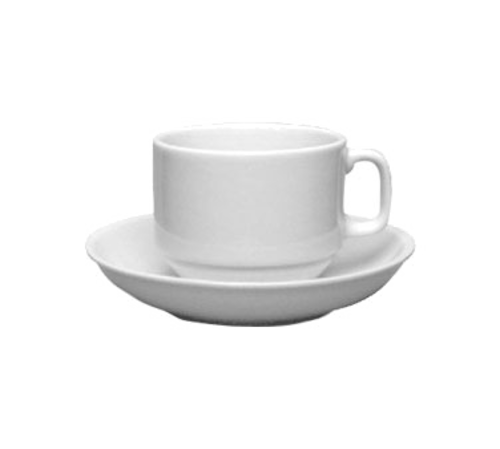 Cappuccino Cup, 6 oz., 3-1/4" dia. x 2-3/8"H, with handle, includes: 5-1/2" dia. saucer, round, microwave & dishwasher safe, lead free, ceramic, European White