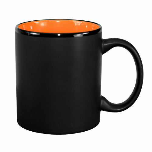 Mug, 11 oz., 3-1/4" dia. x 3-3/4"H, round, with C-handle, fully vitrified, microwave & dishwasher safe, lead free, fully vitrified, stoneware, black matte exterior, orange interior, Hilo®