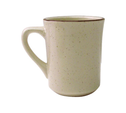 Toledo Cup, 8-1/2 oz., 3-1/8" dia. x 3-7/8"H, round, narrow rim, with handle, microwave & dishwasher safe, lead free, ceramic, American White with Brown speckle & rim, Granada™