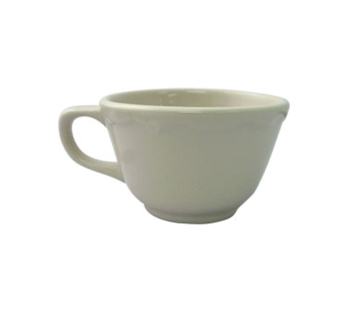 Cup, tall, 7-1/2 oz., 4" dia. x 2-1/2"H, round, with handle, scalloped edge, microwave & dishwasher safe, lead free, ceramic, American White, Victoria™