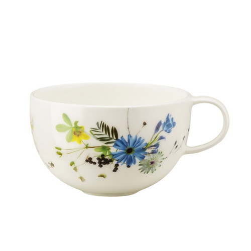 Tea/Cappuccino Cup, 9 oz., round, fits saucer (14676), scratch-resistant, microwave and dishwasher safe, bone china, white, with floral decoration, Rosenthal, Rosenthal, Brillance Fleurs des Alpes