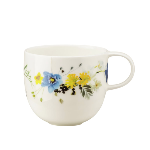 Cup, 7 oz., tall, round, scratch-resistant, microwave and dishwasher safe, bone china, white, with floral decoration, Rosenthal, Rosenthal, Brillance Fleurs des Alpes