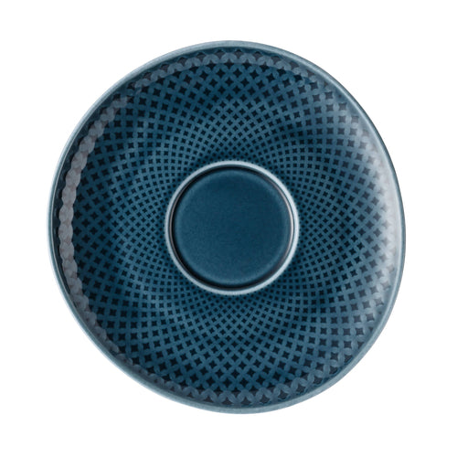 Saucer, 6" dia., round/freeform, hand-glazed, relief on front & back, porcelain, Rosenthal, Junto, ocean blue