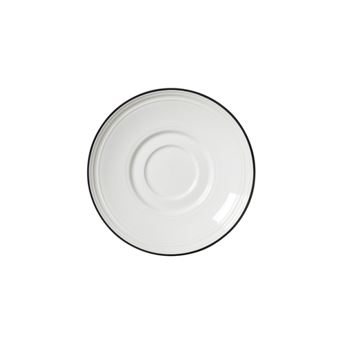 Saucer, 6" dia., round, fully vitrified, freezer/microwave/dishwasher safe, ceramic, white, Steelite Performance, Bead Black Band (minimum = case quantity) (non-stock item)