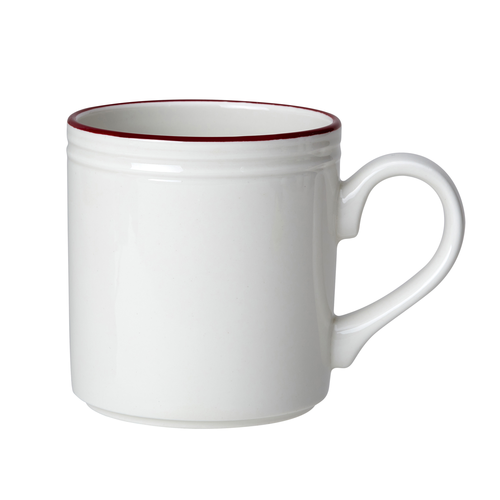 Mug, 10 oz., 4-3/4" x 3-1/4" x 3-1/2", fully vitrified, freezer/microwave/dishwasher safe, ceramic, white, Steelite Performance, Bead Accent Maroon Band (minimum = case quantity) (non-stock item)