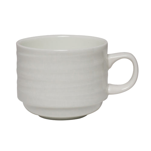 Cup, 8 oz., 4-1/8" dia. x 2-1/2"H, stackable, bone china, white, Foliobone Ruche (minimum = case quantity) (stock item)