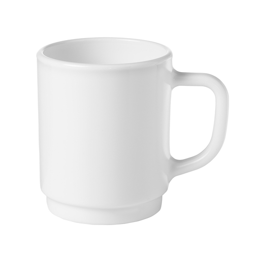 Mug, 8-3/4 oz., 3-1/2" dia x 4-1/8"H, stackable, with handle, glass, white, Steelite Performance, Careware (minimum = case quantity) (stock item)