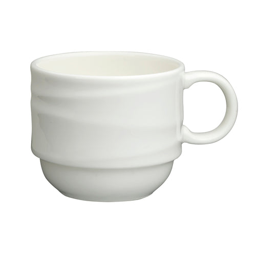 Cup, 8-1/4 oz., 4-1/2"L x 2-3/4"H, with handle, stackable, embossed, scratch & mark resistant glaze, Maxadura porcelain, Royal Porcelain, Reverb (minimum = case quantity) (stock item)