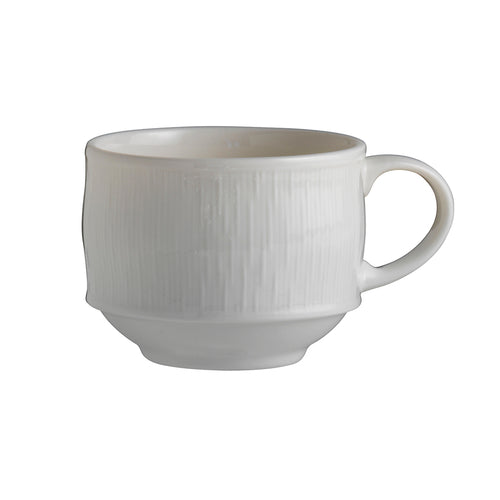 Cup, 10 oz., 3-1/2"W x 4-3/4"H, with handle, stackable, embossed, scratch & mark resistant glaze, Maxadura porcelain, Royal Porcelain, Bloom (minimum = case quantity) (stock item)
