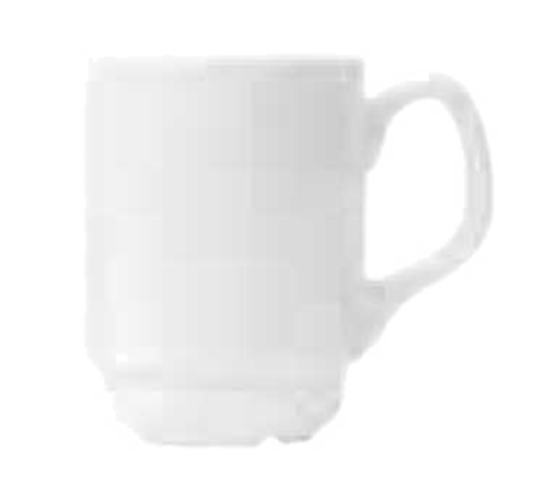 Mug, 8 oz., 4" dia. x 3-3/4"H, 1-5/8" dia. foot, with handle, stackable, fully vitrified, porcelain, Slenda® pattern & shape, White Royal Rideau™ body color (fits saucer 950002589) (36 each per case)