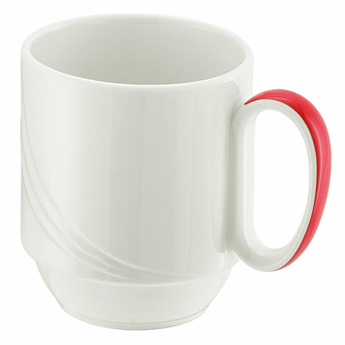 Mug, 9-1/2 oz., (H 3-3/8"; T 3-1/8"; F 2-1/8"), stackable, porcelain, Donna Senior pattern, Schonwald, Continental White™ with red band (6 each per case)
