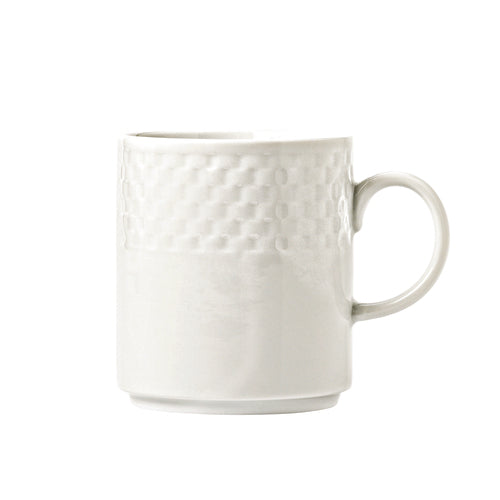Mug, 12 oz., 3-3/8" top dia. x 3-3/4"H, with handle, stackable, embossed, highly polished foot, porcelain, Microban® fully vitrified glaze, Eos™ pattern & shape, Constellation™, Lunar White™ body color (36 each per case)